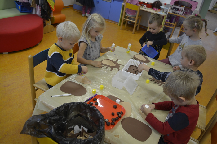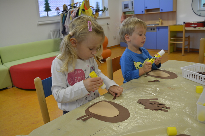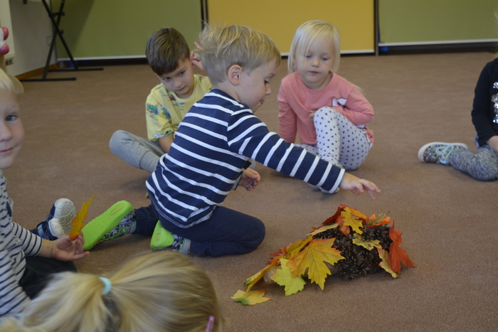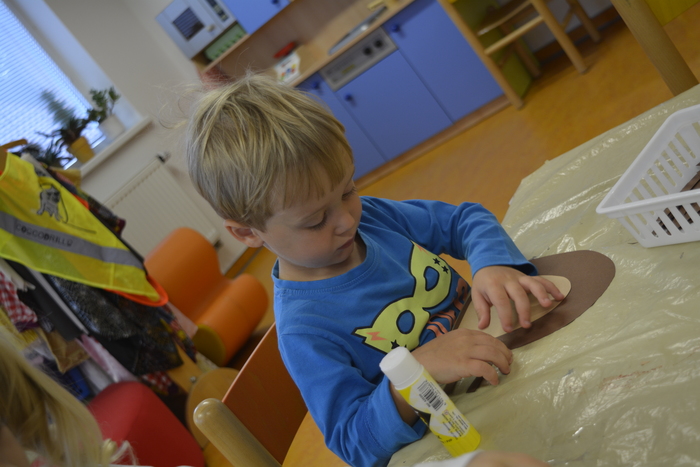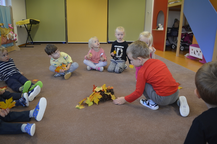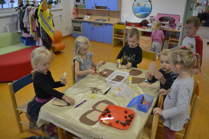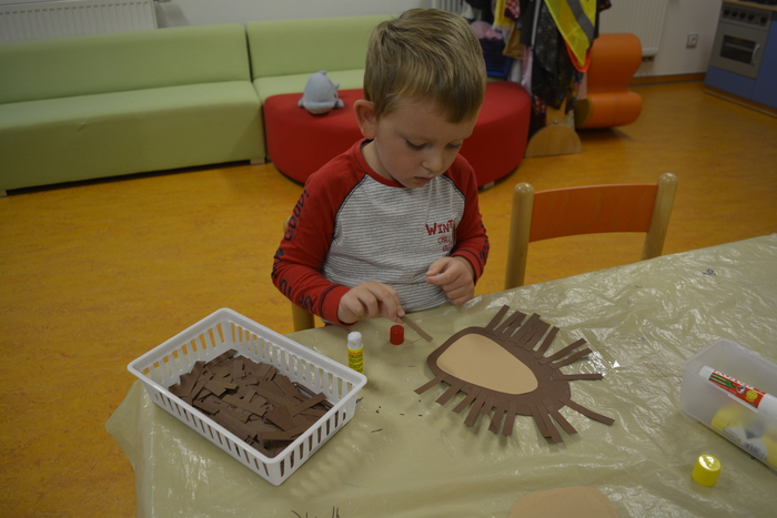 U Plavčíků jsme přivítali podzim. Povídali jsme si o podzimní přírodě, rostlinách, zvířatech, počasí atd. Pohráli jsme si s kaštany (cvičení, masáž, počítání, tvoření obrázků,...), vyrobili ježky a taky jednoho uspali.