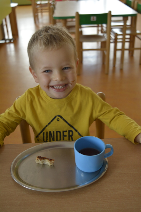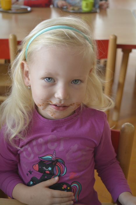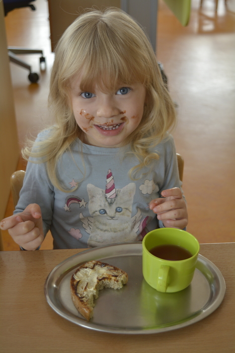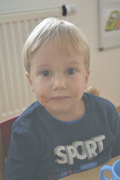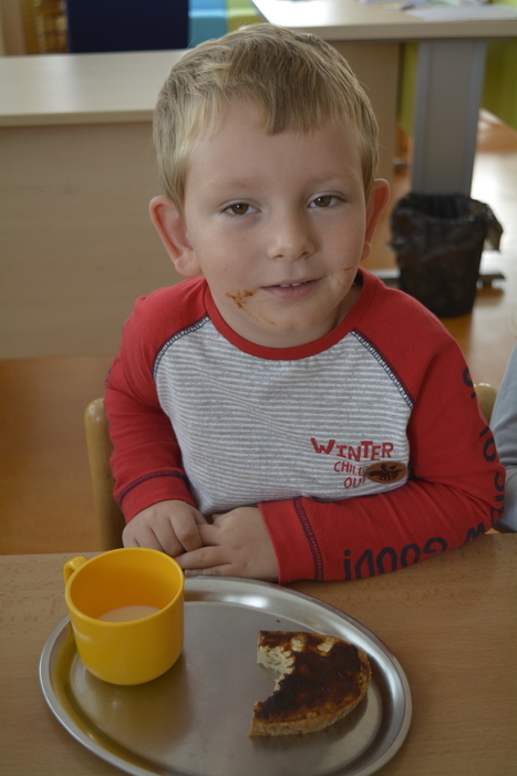 Jako bonus jsou zde fotky, jak to vypadá, když dětem chutná odpolední svčinka - chleba s povidly :)