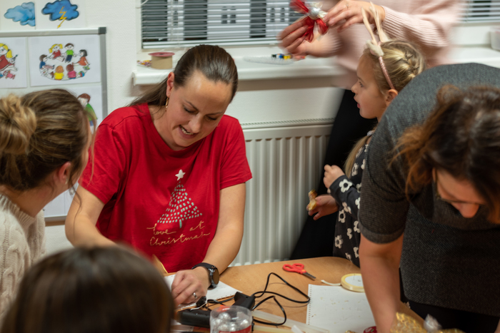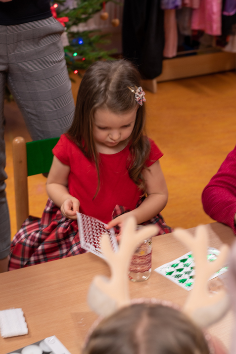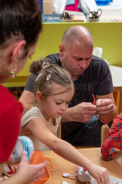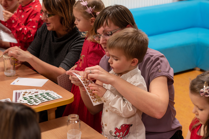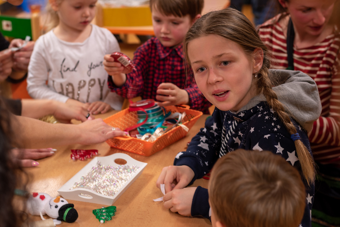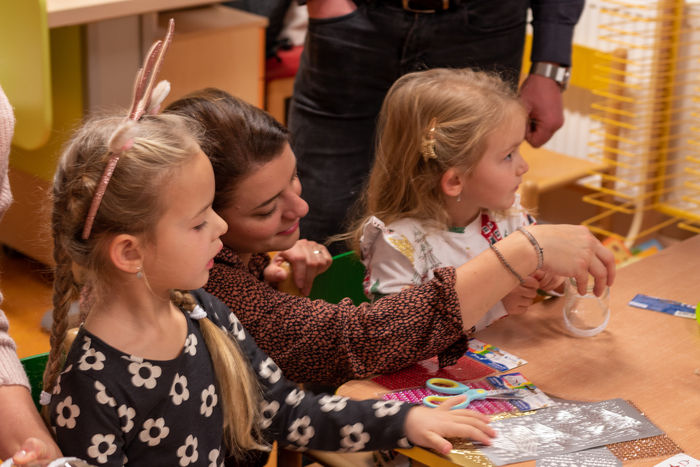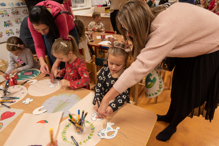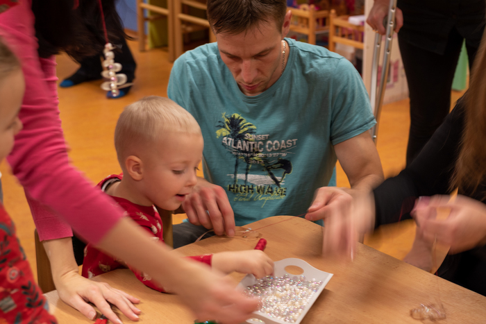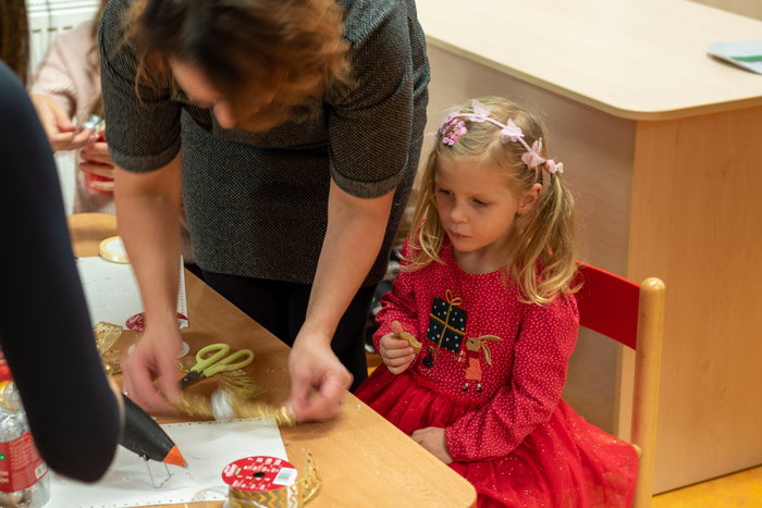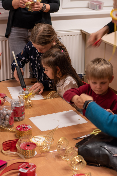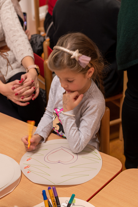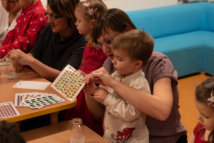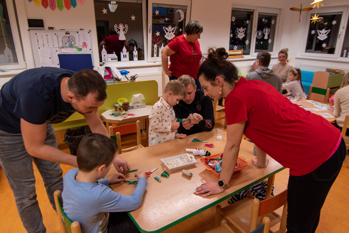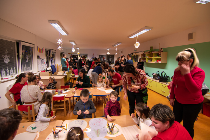Děti připravily občerstvení. Po vystoupení měli rodiče s dětmi možnost zúčastnit se připravených dílniček s různými výrobky.