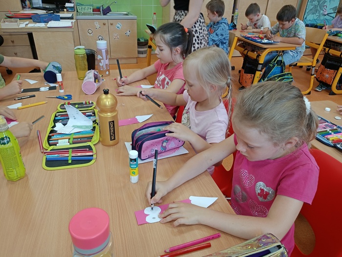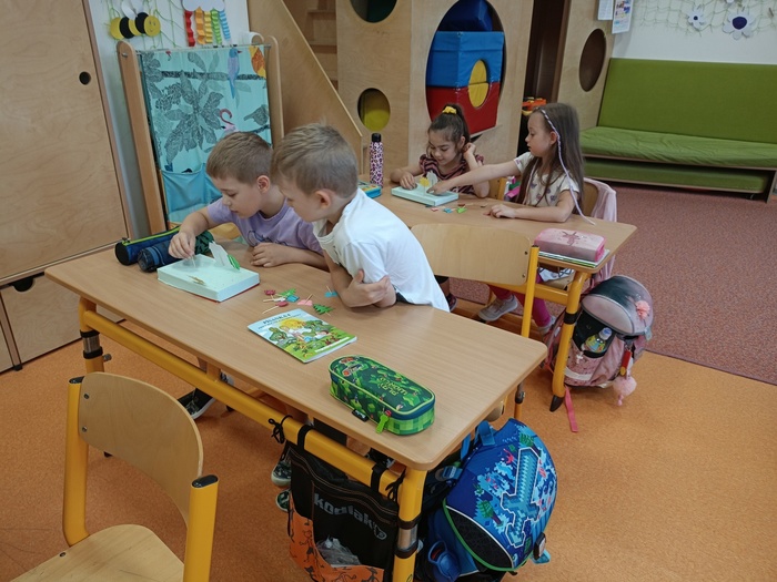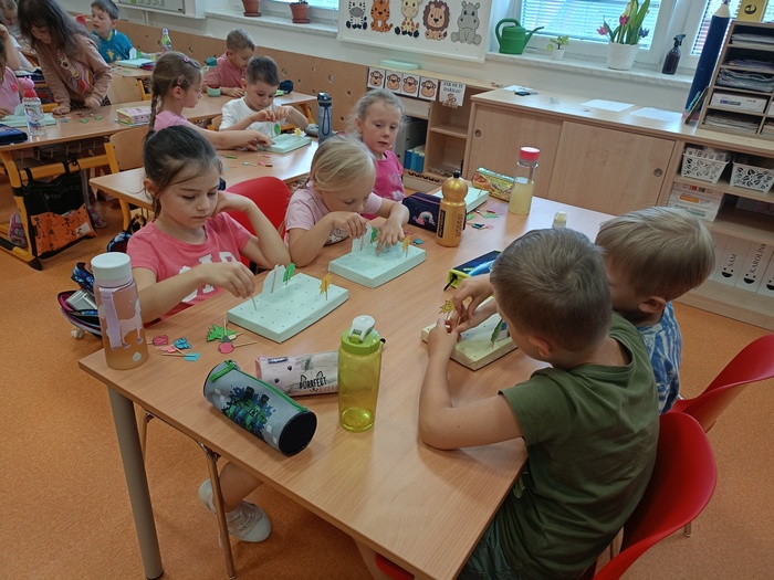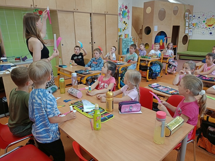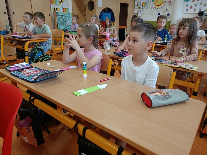 V pátek 7. června se do naší školy přišli podívat předškoláci, aby si zkusili, co je příští rok čeká. Prvňáci tak dostali poprvé příležitost předávat své zkušenosti dál. Během tohoto dne jsme stihli převyprávět pohádku O třech prasátkách, práci s početním divadélkem, vyrábění z papíru i několik her.